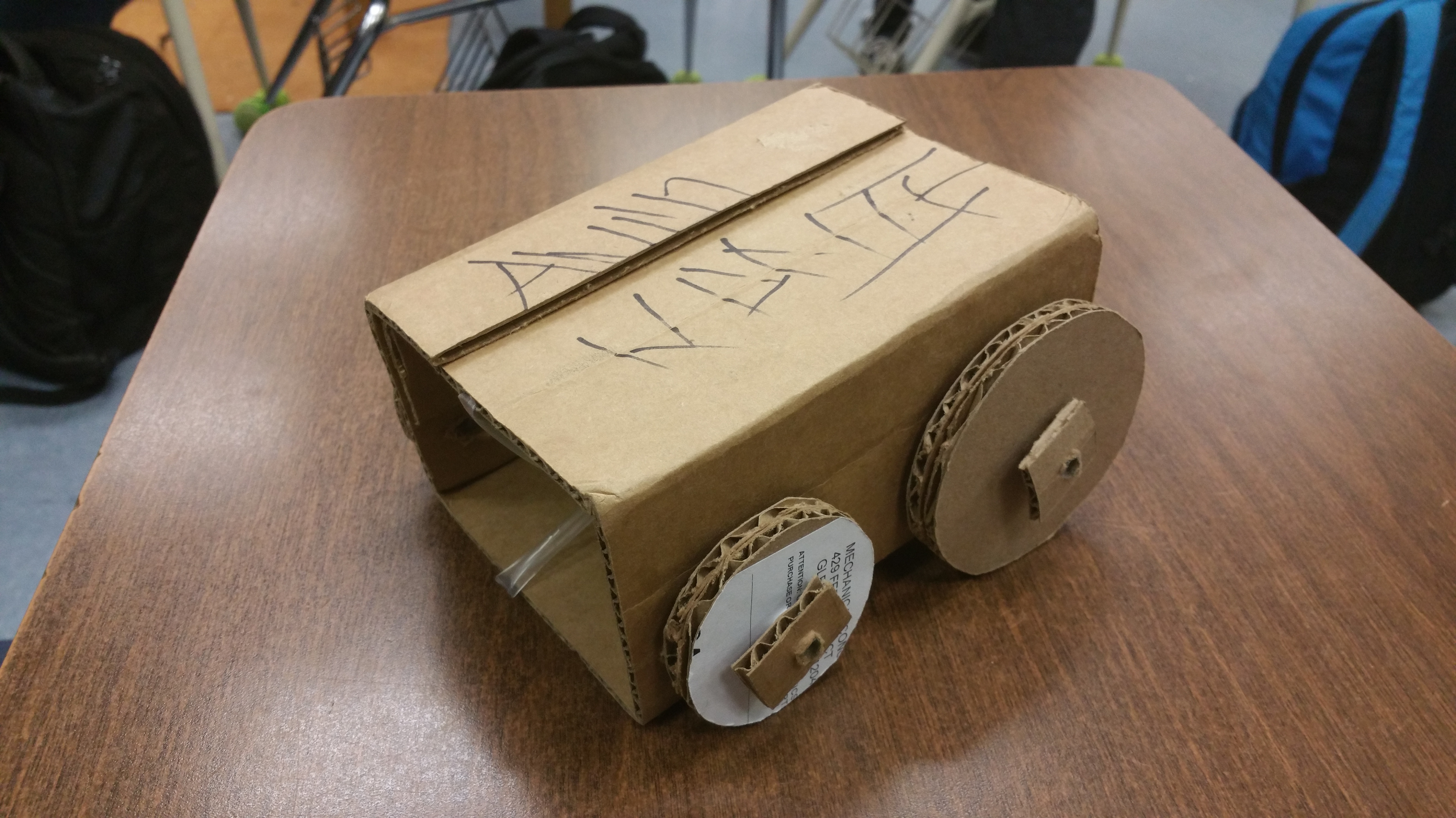 Today we discussed the results of the cardboard car Wednesday Challenge. I got second place with an average of 166.667 inches, which was 1 inch less than the 1st place person >:O I made a sketchup of my cardboard car beforehand, so I was able to save time on recording everything that happened post-competition.